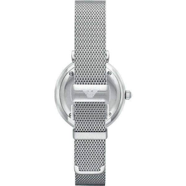 Emporio Armani AR1955 is an incredible trendy Ladies watch. Case is made out of Stainless Steel while the dial colour is Mother of pearl. This model has got 30 metres water resistancy – it can be worn in scenarios where it is likely to be splashed but not immersed in water. It can be worn while washing your hands and will be fine in rain.Sku: AR1955