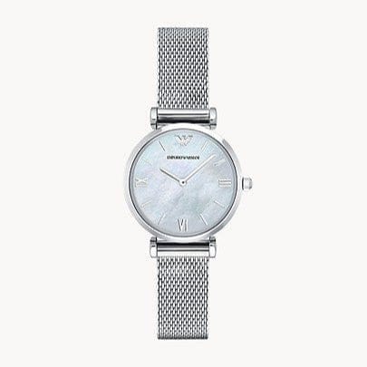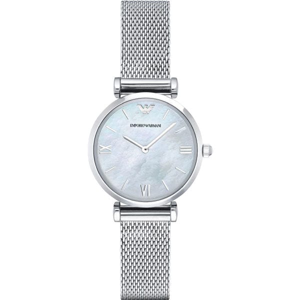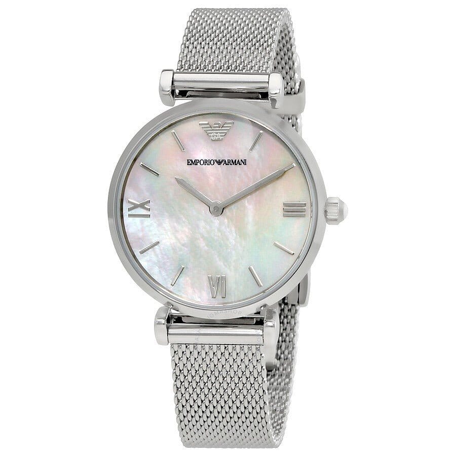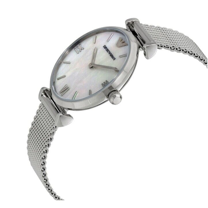 Emporio Armani Gianni T Bar Mother of Pearl Dial Silver Steel Strap Watch For Women - AR1955