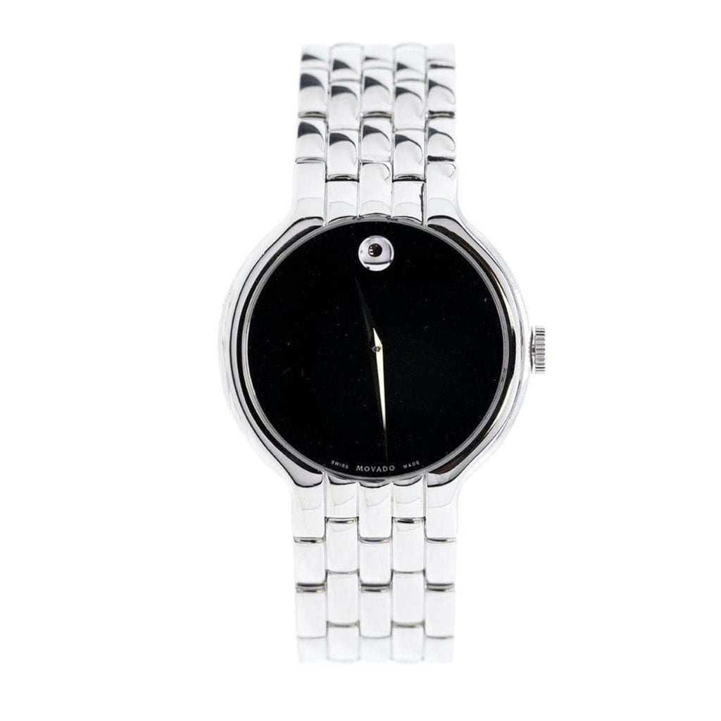 Movado Classic Quartz Black Dial Silver Steel Strap Watch for Men - 0606337