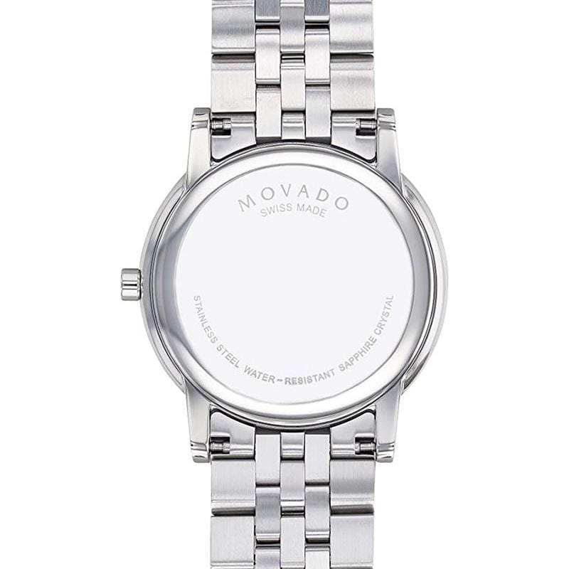 Encased in stainless steel, the Movado MUSEUM CLASSIC 0607199 exudes a sense of refined sophistication. The sleek and polished bracelet seamlessly integrates with the case, creating a harmonious and luxurious aesthetic that will elevate any outfit.