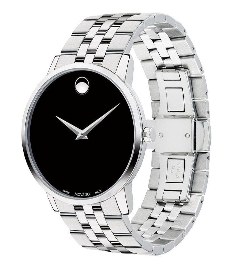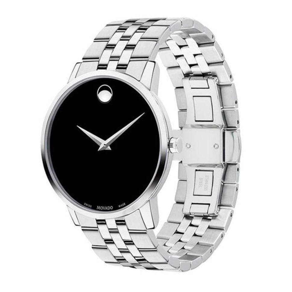 Movado Museum Classic Black Dial Silver Steel Strap Watch for Men - 0607199