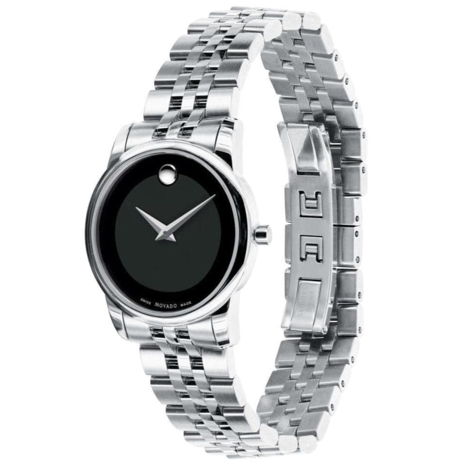 Movado Museum Classic Black Dial Silver Steel Strap Watch For Women - 0606505