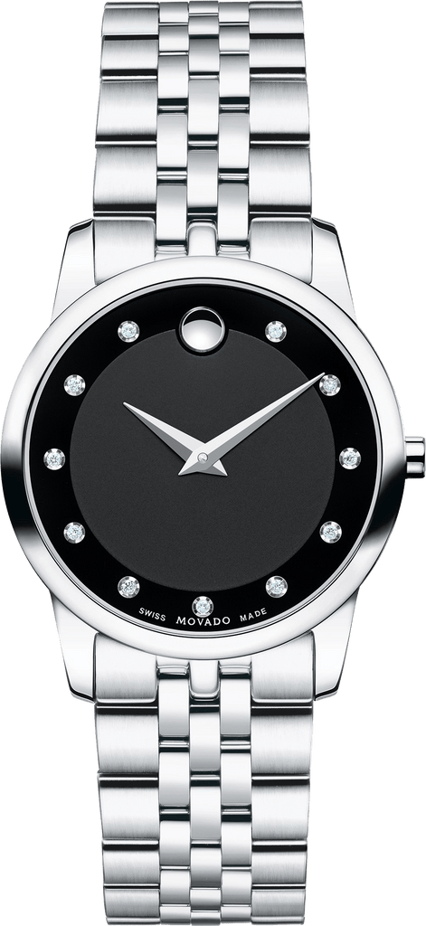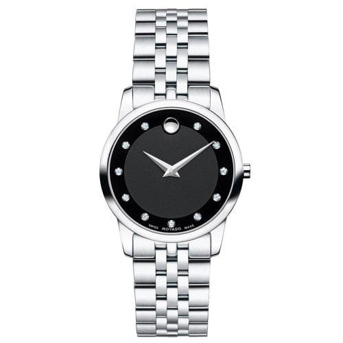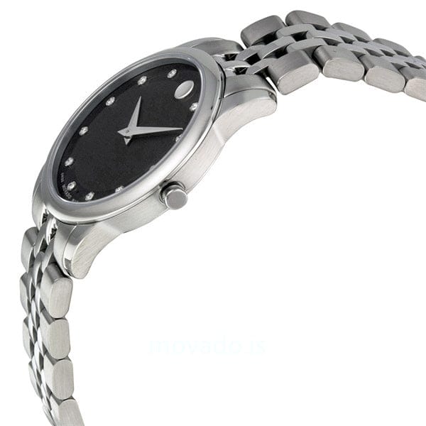 Movado Museum Classic Black Dial Silver Steel Strap Watch For Women - 0606858