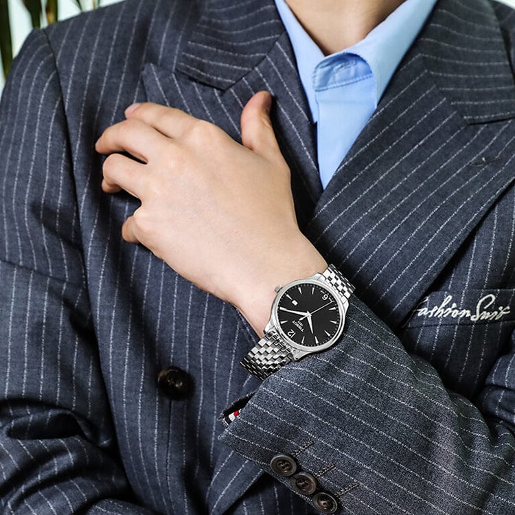 Tissot T063.610.11.057.00 Tradition Men’s Watch. The case is made out of Silver Stainless Steel with a silver bezel, which stands for the high quality of the item, it has a Black Dial. This model has got 100 meters of water resistance. it can be worn in scenarios where it is likely to be splashed but not immersed in water and will be fine in rain. The watch is shipped with an original box and a guarantee from the manufacturer.