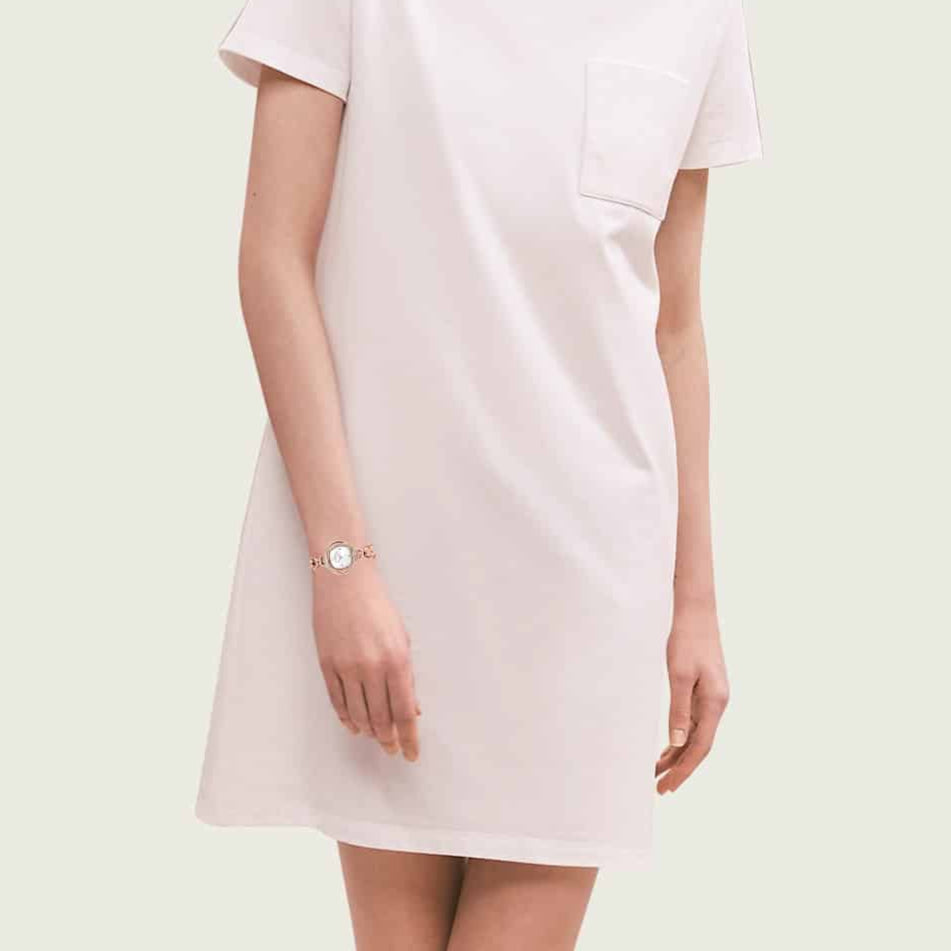 This Swarovski watch displays a brilliant integration of natural forms and modern design. Inspired by flowers, the bezel features two intertwined lines of shimmering rose-gold tone PVD coating, one adorned with glittering crystals.