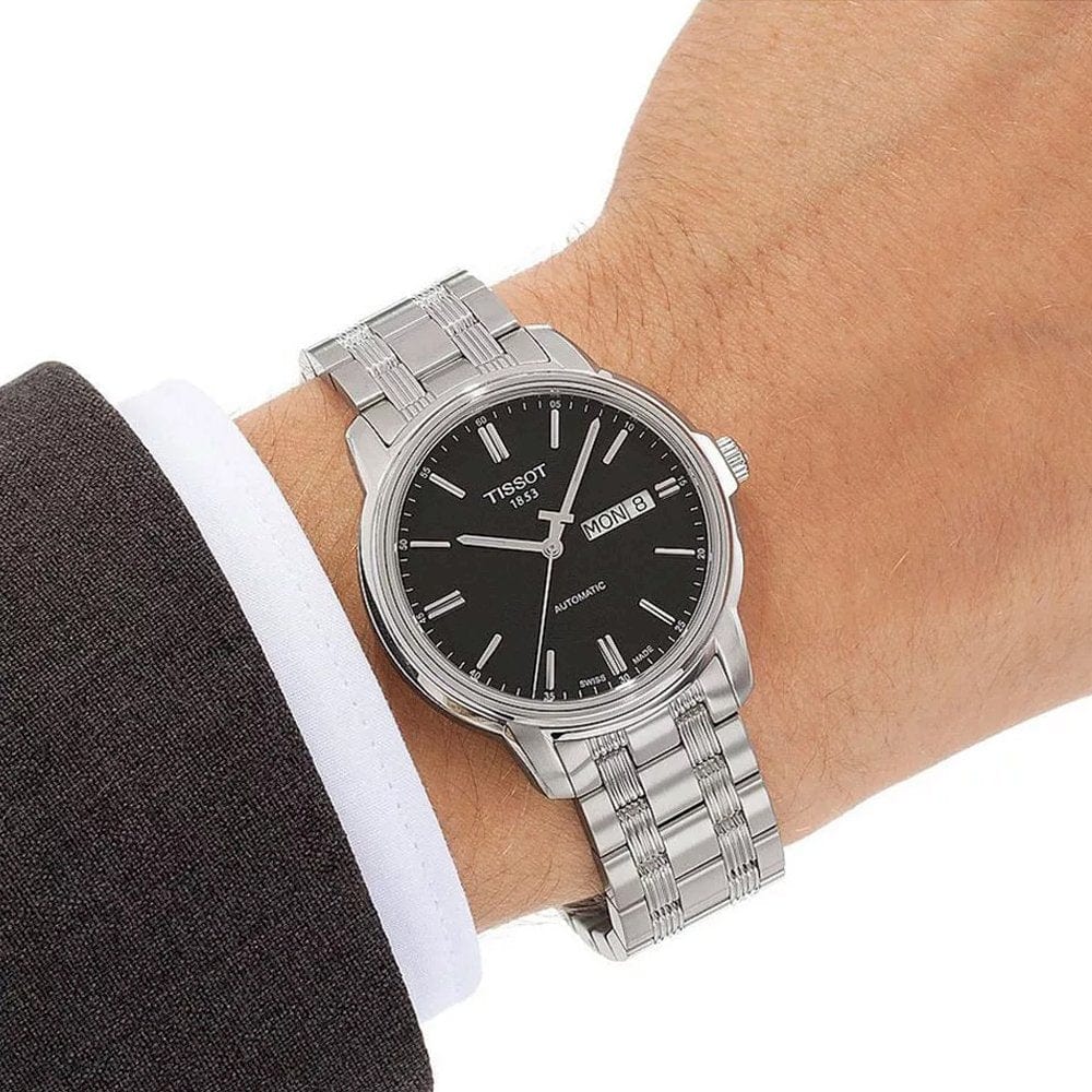 Tissot Automatics III Black Dial Silver Steel Strap Watch For Men - T065.430.11.051.00
