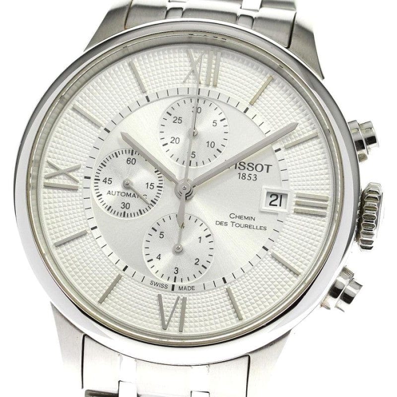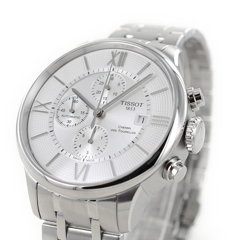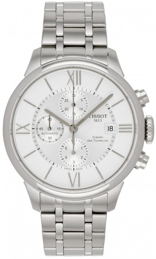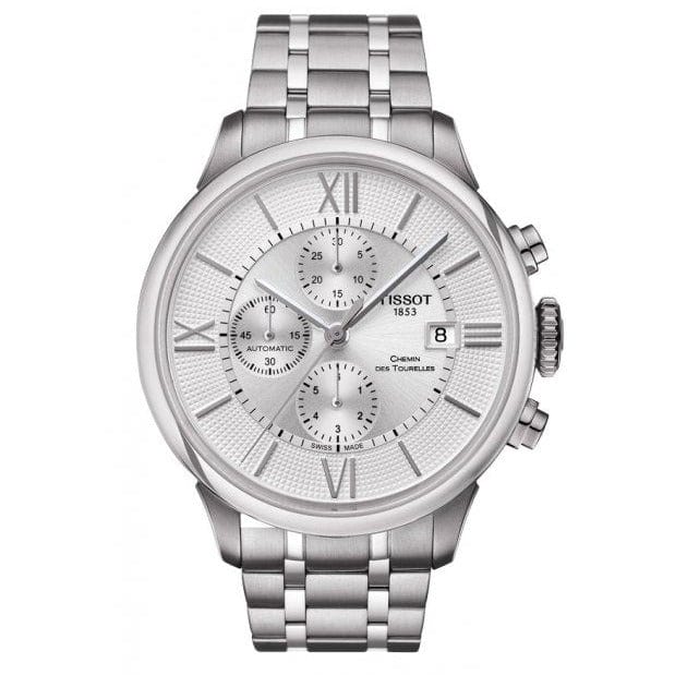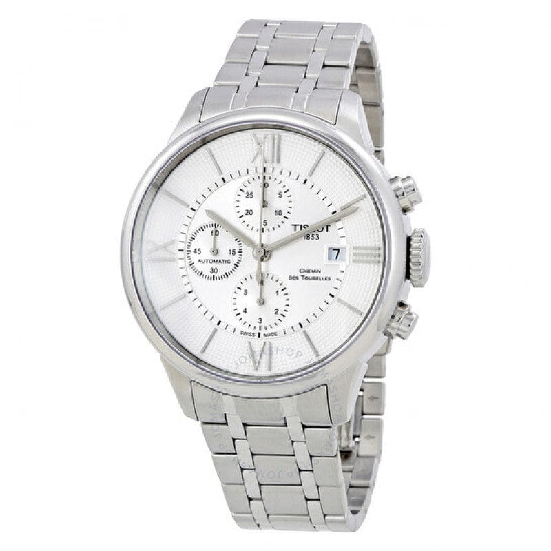 Tissot Chemin des Tourelles Automatic Chronograph White Dial Silver Steel Strap Watch for Men - T099.427.11.038.00