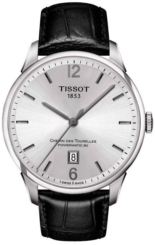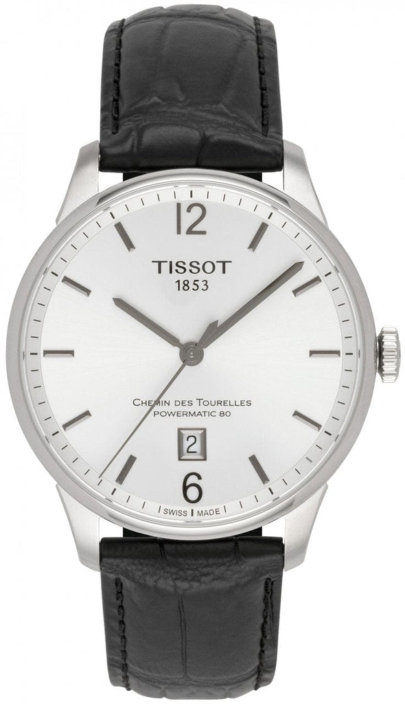 Tissot Chemin Des Tourelles Powermatic 80 Silver Dial Black Leather Strap Watch For Men - T099.407.16.037.00