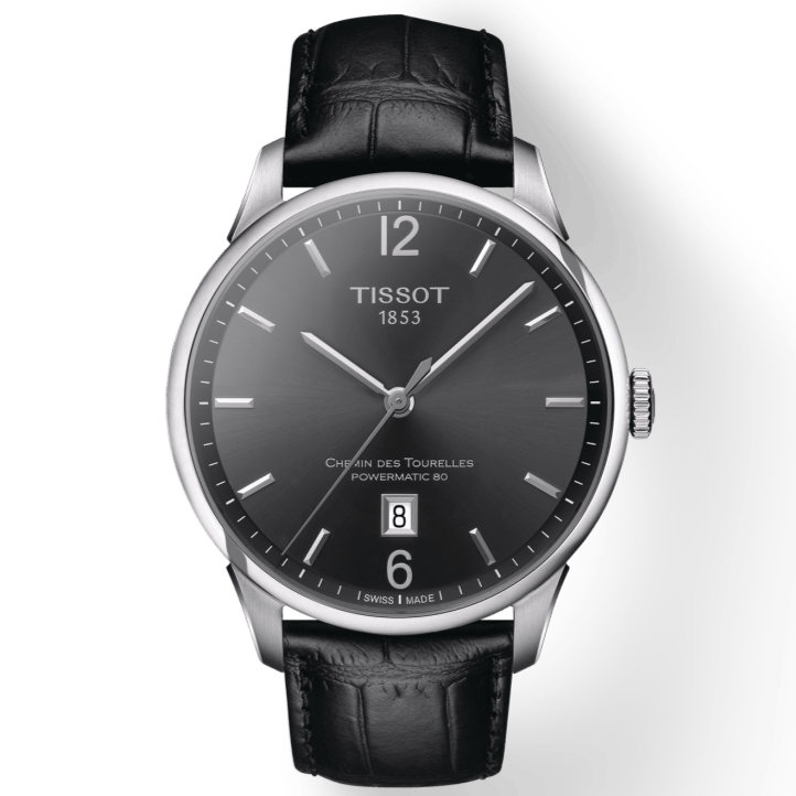 Expertly crafted and stylishly designed, the Tissot Chemin Des Tourelles Powermatic 80 watch is the perfect accessory for any man. Boasting a sleek black dial and black leather strap, this watch is both fashionable and functional. With its Powermatic 80 movement, it offers 80 hours of power reserve, making it reliable and long-lasting. Elevate your style with this impressive timepiece.