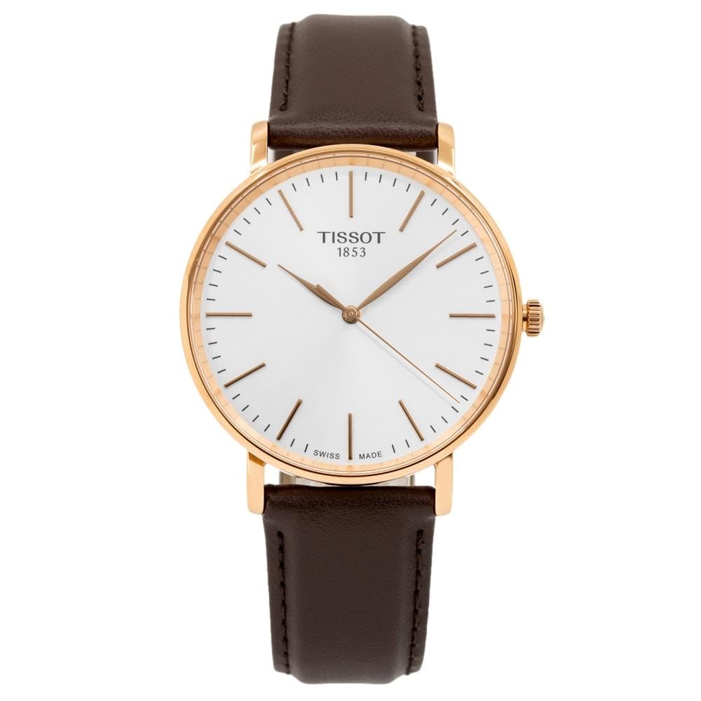 Tissot Everytime Gent Silver Dial Brown Leather Strap Watch for Men - T143.410.36.011.00