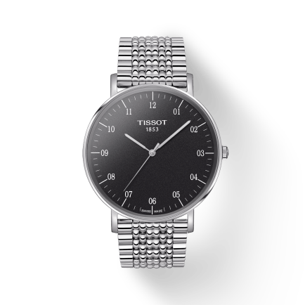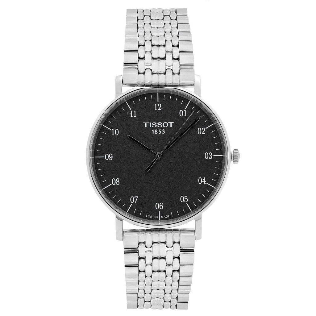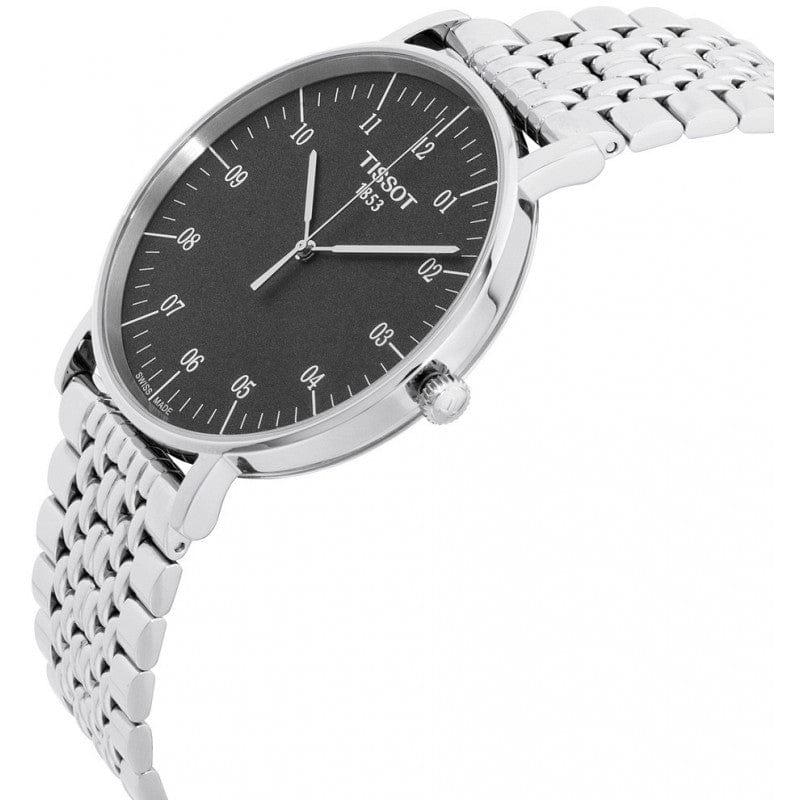 Tissot Everytime Large Black Dial Silver Mesh Bracelet Watch For Men - T109.610.11.077.00