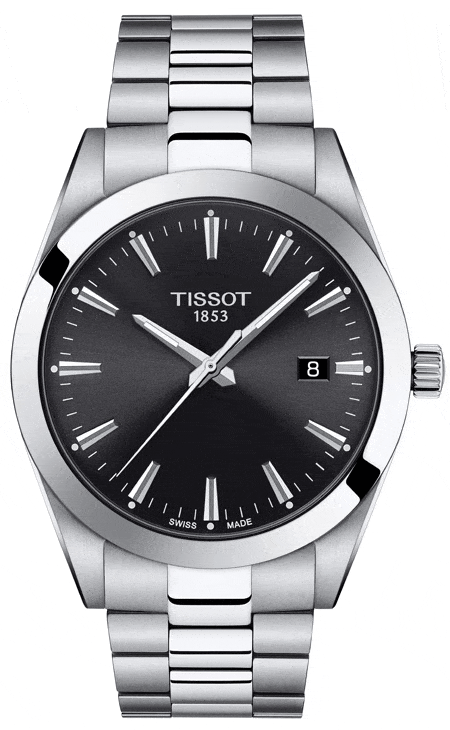 Tissot T127.410.11.051.00 Gentleman Men’s Watch. The case is made out of Silver Stainless Steel with a silver bezel, which stands for the high quality of the item, it has a Black Dial. This model has got 100 meters of water resistance. it can be worn in scenarios where it is likely to be splashed but not immersed in water and will be fine in rain. The watch is shipped with an original box and a guarantee from the manufacturer.