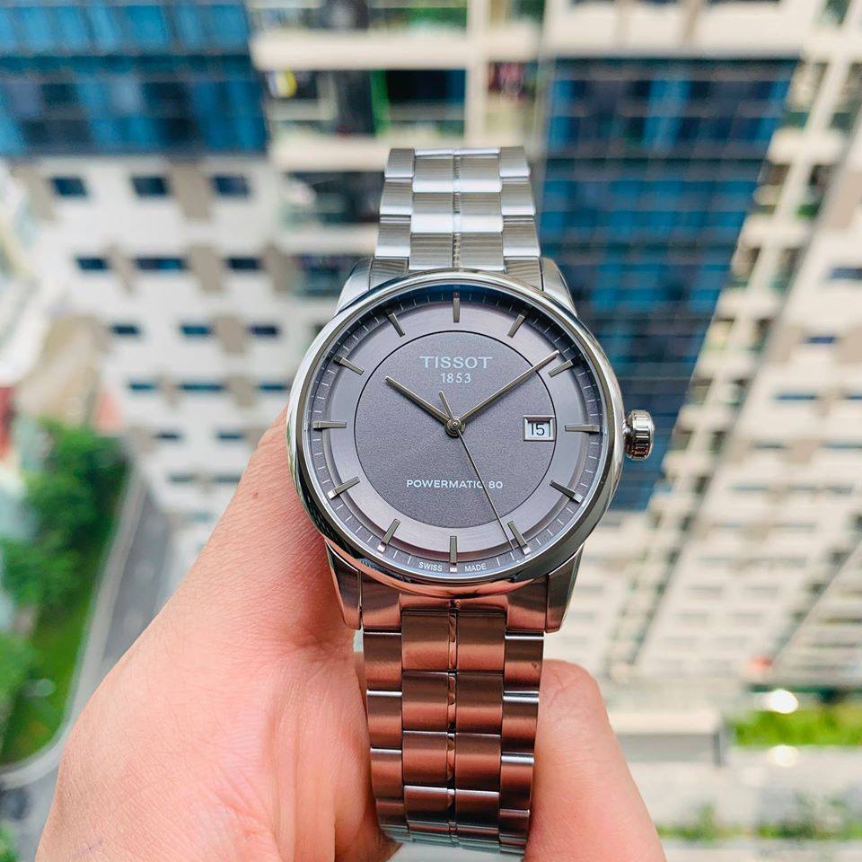 Tissot Luxury Powermatic 80 Grey Dial Silver Steel Strap Watch for Men - T086.407.11.061.00