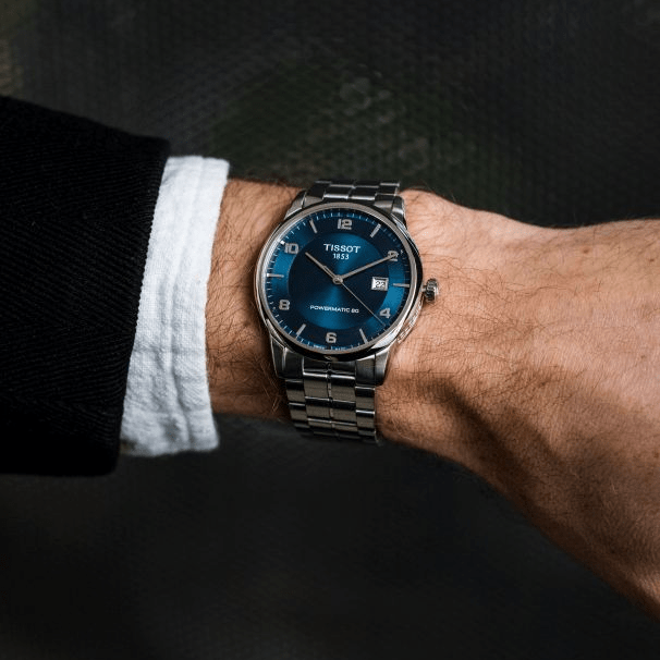 Upgrade your style with the Tissot Luxury Powermatic 80 watch for men. With its bold blue dial and sleek silver steel strap, this timepiece exudes sophistication and elegance. Plus, thanks to its Powermatic 80 movement, it boasts an impressive 80-hour power reserve for longer lasting accuracy. Elevate your look with this luxurious and reliable watch.