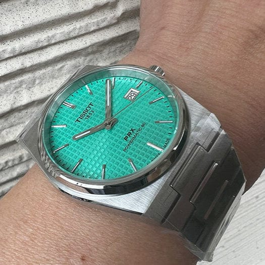 Discover timeless elegance with the Tissot PRX Powermatic 80 Automatic Watch. Featuring a striking mint green dial and a durable silver steel strap, this watch elevates any outfit. Equipped with the innovative Powermatic 80 movement, it offers reliable accuracy and a power reserve of up to 80 hours. Embrace luxury and precision in one stunning timepiece.