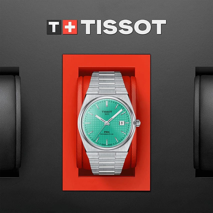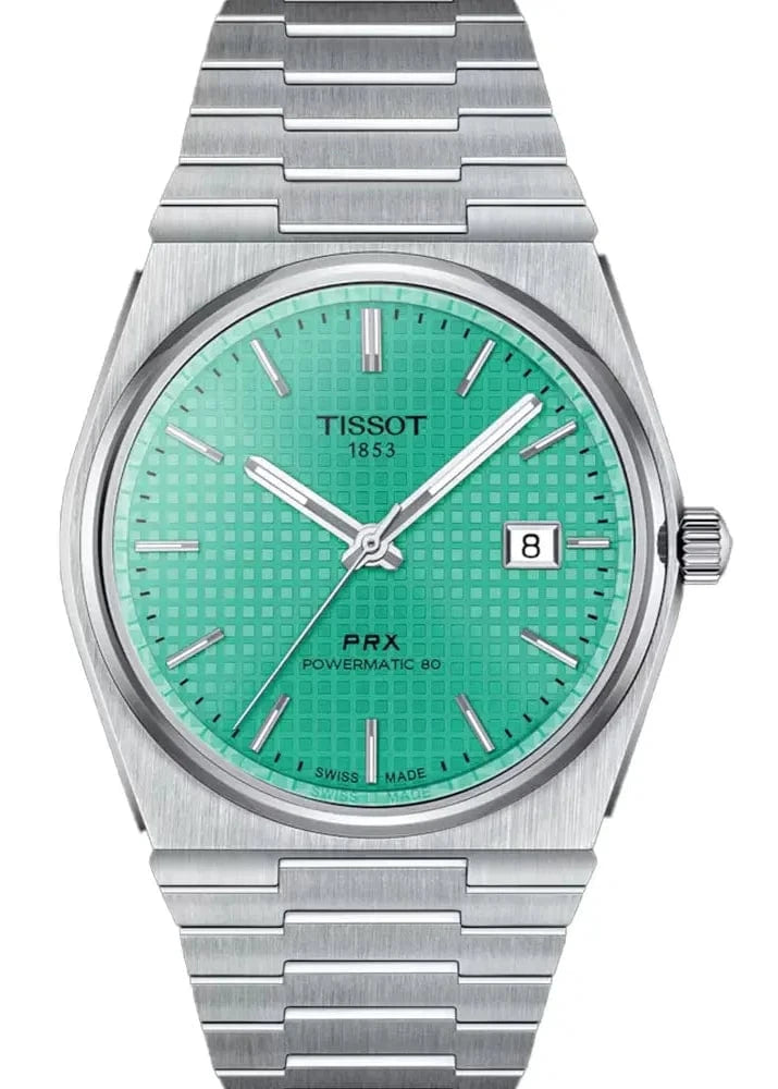 Tissot PRX Powermatic 80 Automatic Mint Green Dial Silver Steel Strap Watch for Men - T137.407.11.091.01