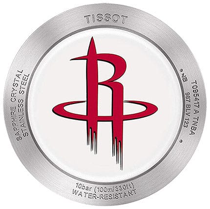 The Tissot Quickster Houston Rockets Special Edition series watch features a stainless steel 42 mm case, with a fixed bezel a silver dial and a scratch resistant sapphire crystal.