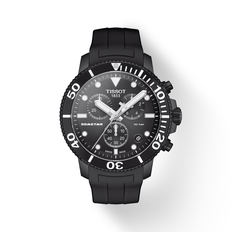 Tissot Seastar 1000 Chronograph Black Dial Black Rubber Strap Watch For Men - T120.417.37.051.02