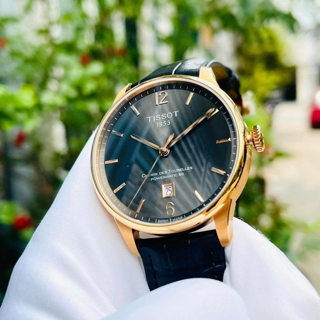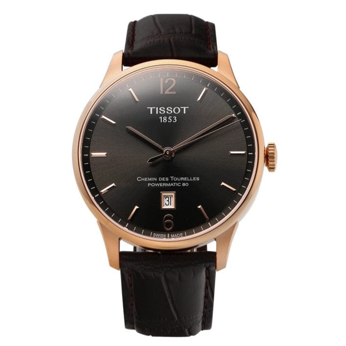Tissot T Classic Chemin Des Tourelles Powermatic 80 Brown Dial Brown Leather Strap Watch for Men - T099.407.36.447.00