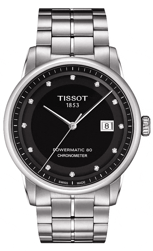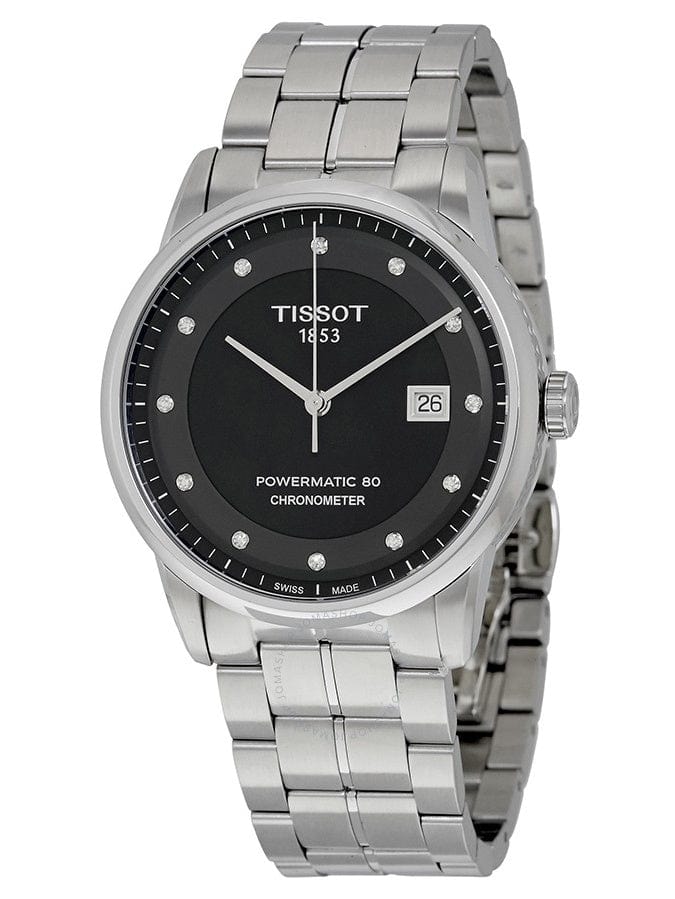 Tissot T Classic Luxury Powermatic 80 Black Dial Silver Steel Strap Watch For Men - T086.408.11.056.00