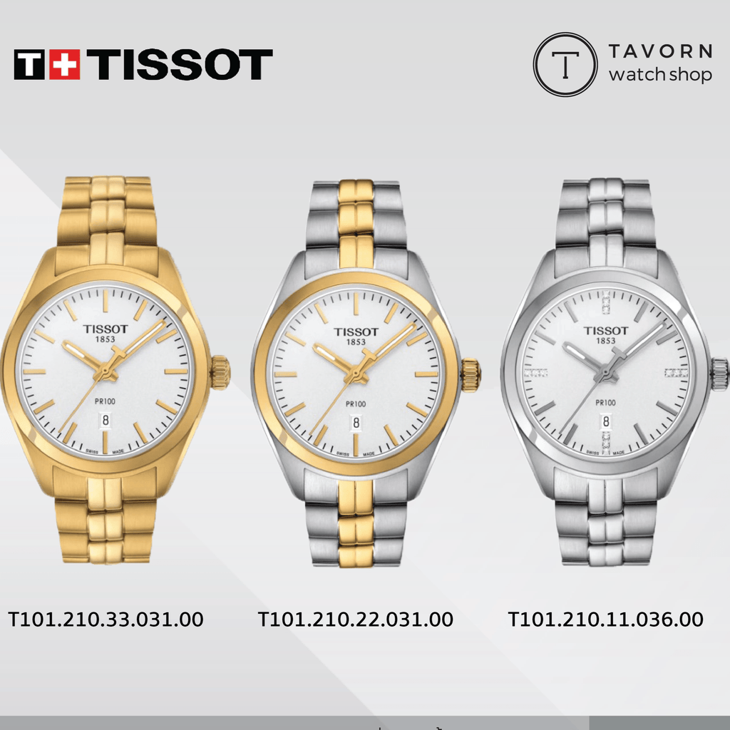 Tissot T Classic PR 100 Lady White Dial Gold Steel Strap Watch for Women - T101.210.33.031.00