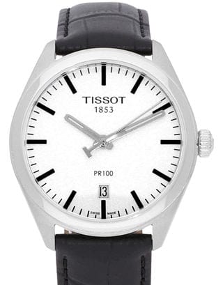 Tissot T Classic PR 100 White Dial Black Leather Strap Watch for Men - T101.410.16.031.00
