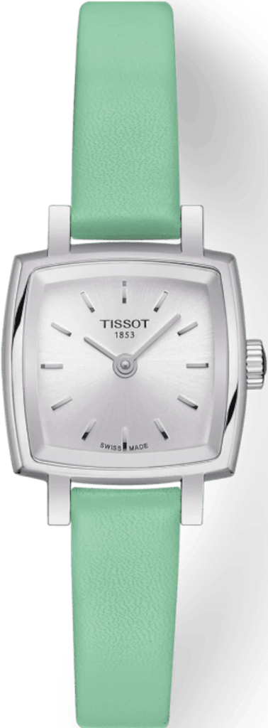 Tissot T Lady Lovely Square Silver Dial Light Green Leather Strap Watch for Women - T058.109.16.031.01