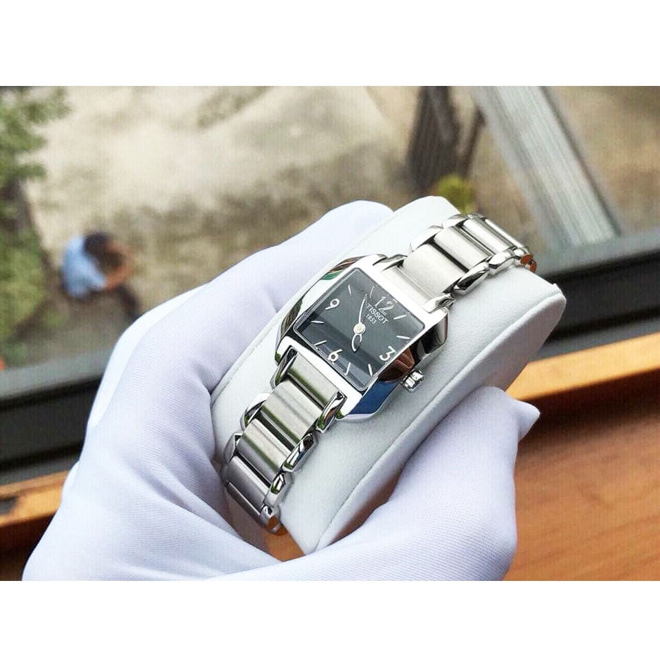 Tissot T Wave Black Dial Silver Steel Strap Watch for Women - T02.1.285.52
