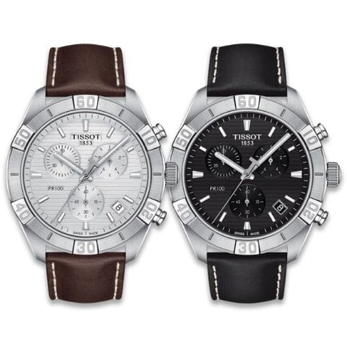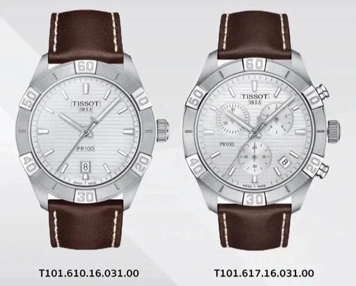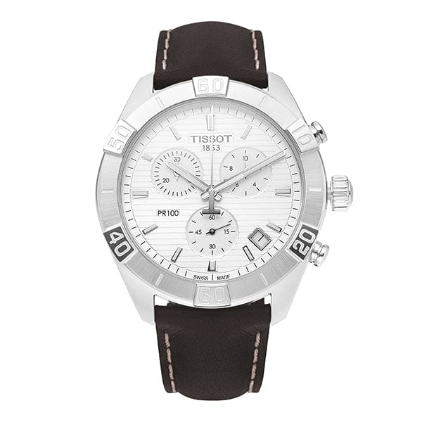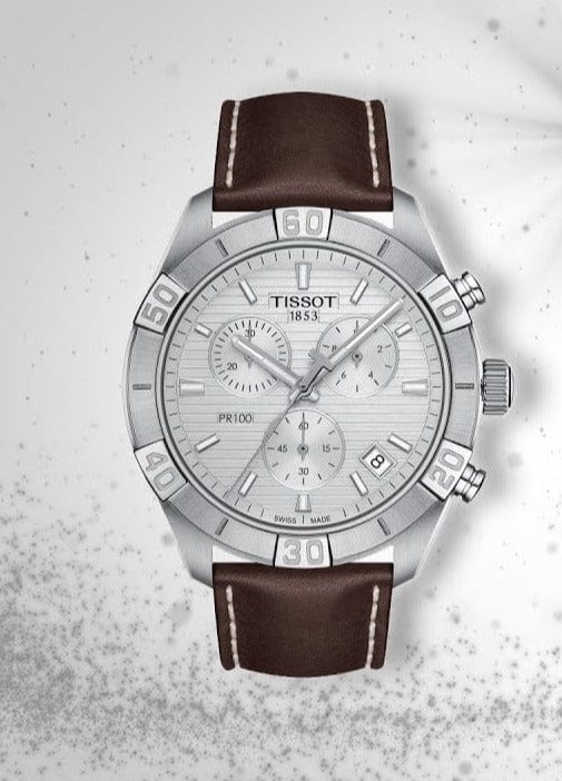 Tissot PR 100 Sport Quartz Chronograph Silver Dial Brown Leather Strap Watch For Men - T101.617.16.031.00