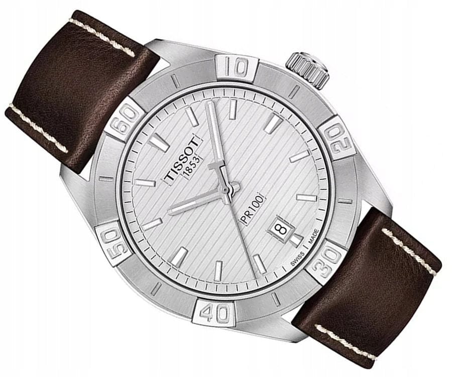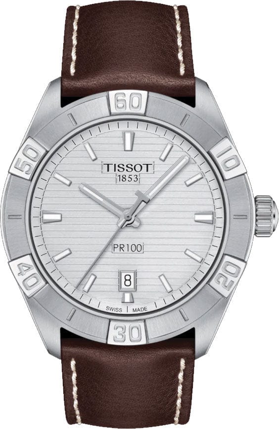 The Tissot PR 100 is a classic watch destined to be worn often and for every occasion. It features the simple and elegant face the collection is loved for, with the pared-back aesthetic symbolizing luxury, quality and classic style. FEATURES: , MOVEMENT: ETA F06.115, CASE BACK: 0, DIAL SIZE: 42.00, DIAL COLOUR: SILVER, STRAP TYPE: Leather, STRAP COLOUR: Brown, CLASP TYPE: standard buckle, GLASS TYPE: Scratch-resistant sapphire crystal, WATER RESISTANCE: Water-resistant up to a pressure of 10 bar (100m / 330ft), CASE MATERIAL: Stainless steel, INDEXES: indexes, GENDER: GENT, CATEGORY: T-Classic
