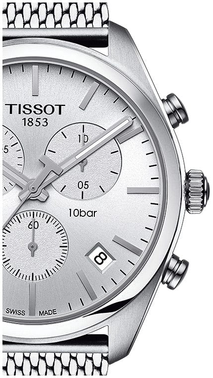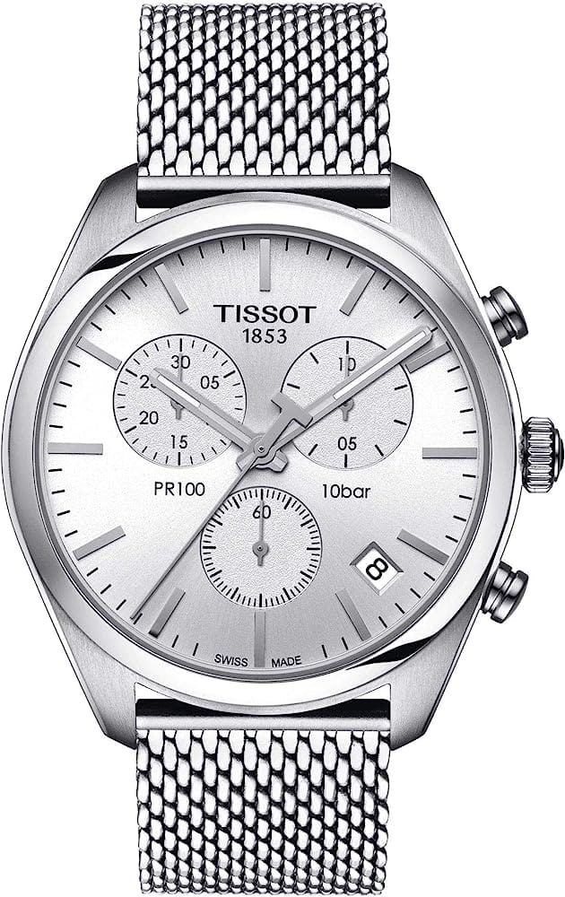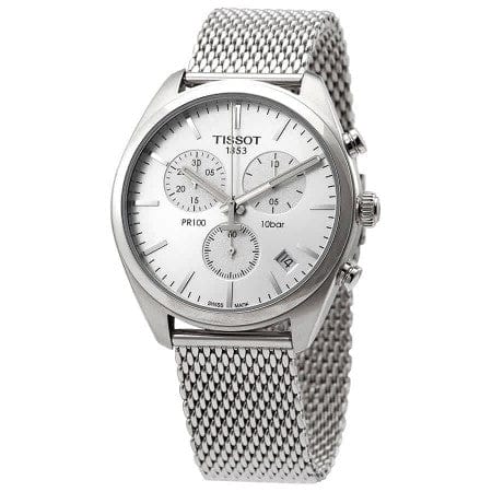 Tissot PR 100 Chronograph White Dial Silver Mesh Bracelet Watch For Men - T101.417.11.031.02