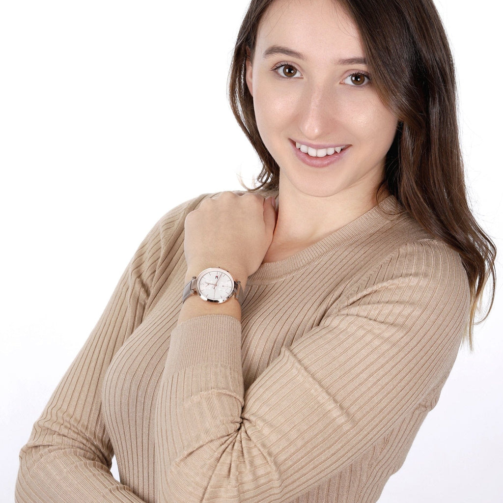 Tommy Hilfiger Angela Quartz Silver Dial Brown Leather Strap Watch for Women - 1782125