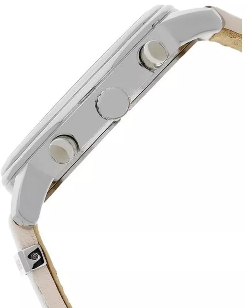 The case of the model is made in a classic silver color. The material is high-strength stainless steel. The dial is reliably protected by mineral glass. The display design will captivate you from the first minute with its delicate combination of silver canvas and pink indication. Three mini displays reflect additional features. The width of the model case is 38 mm. Water resistance is 30 m. Powder-pink leather strap is attached to the case very firmly. The buckle is steel, reliable. Belt holder with engraving of the brand name.