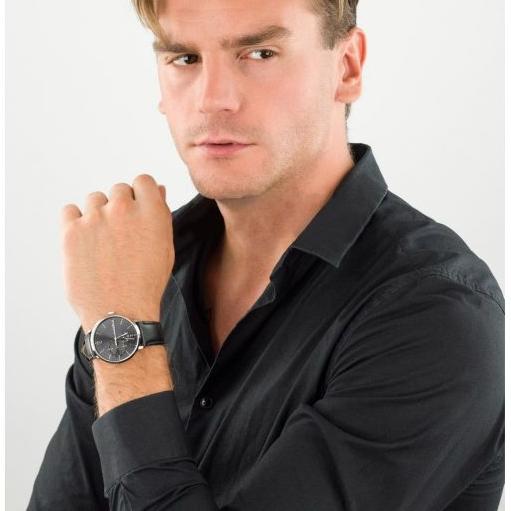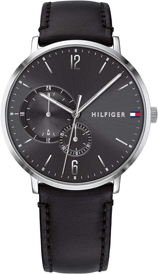 This Tommy Hilfiger men's watch has a case diameter of 40 mm and several sub-displays. Available in a variety of colours as a mesh link bracelet or stitched smooth leather strap.