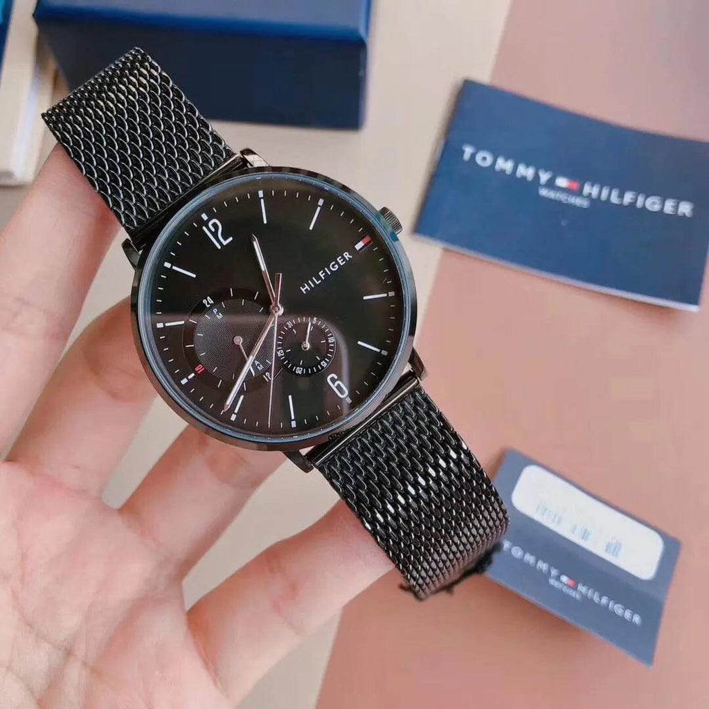 Tommy Hilfiger Brooklyn Black Dial Black Mesh Bracelet Watch for Men - 1791507