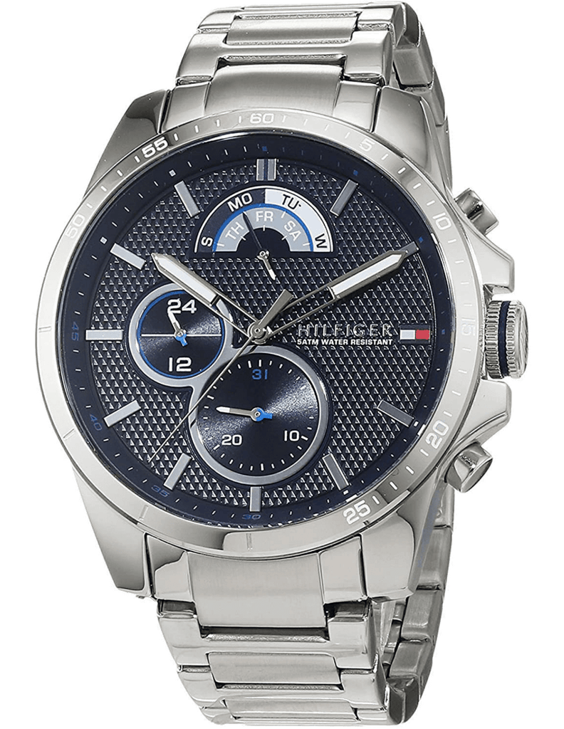 Tommy Hilfiger Decker Quartz Blue Dial Silver Steel Strap Watch for Men - 1791348