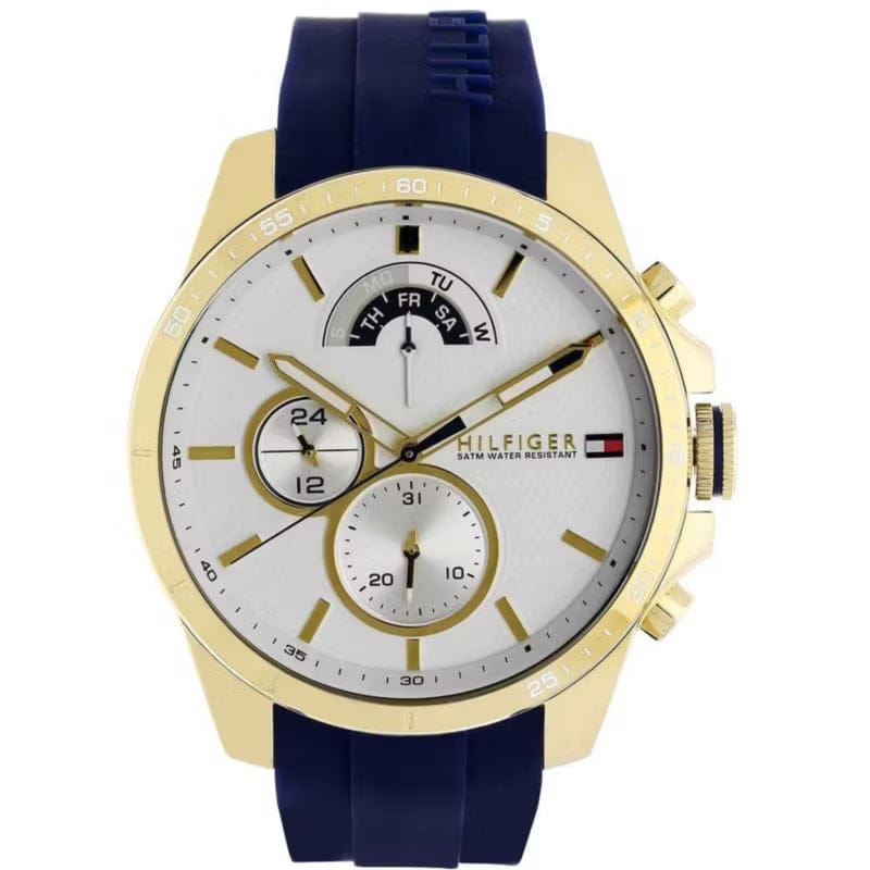 Tommy Hilfiger Decker White Dial Blue Rubber Strap Watch for Men - 1791353