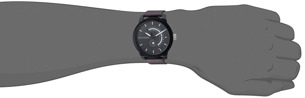 Tommy Hilfiger Denim Black Dial Brown Leather Strap Watch for Men - 1791478