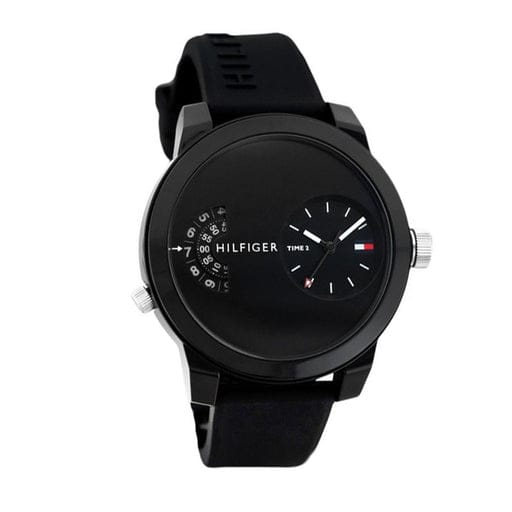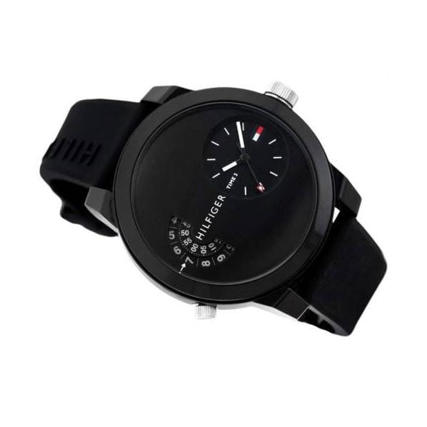 Tommy Hilfiger Denim Black Dial Black Rubber Strap Watch for Men - 1791555