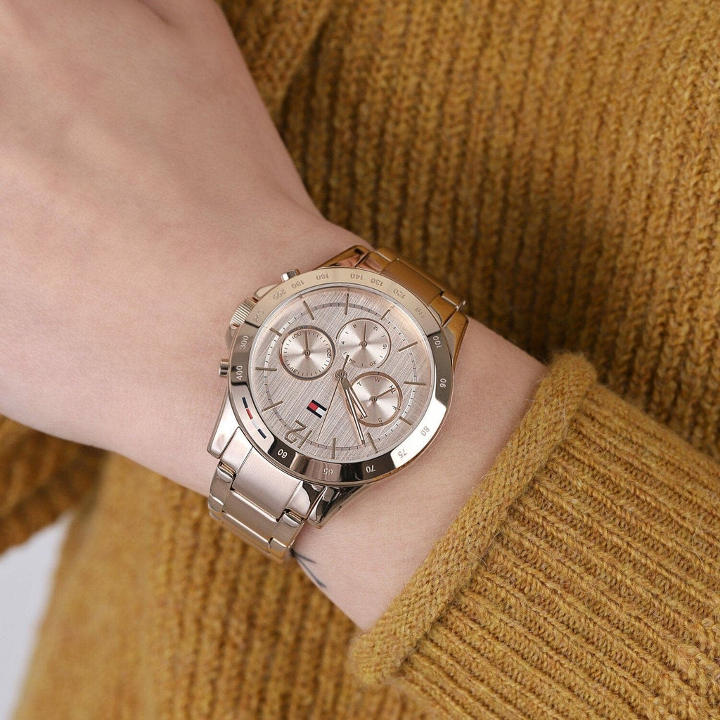 Tommy Hilfiger Haven Chronograph Rose Gold Dial Rose Gold Steel Strap Watch For Women - 1782197
