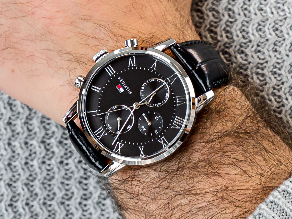 This stylish TOMMY HILFIGER watch is an ideal choice for any man. Boasting a sleek black leather strap and stunning steel casing, this watch is a timeless classic that will be sure to turn heads. The high-precision quartz movement ensures accuracy, making it the perfect accessory for any occasion.
