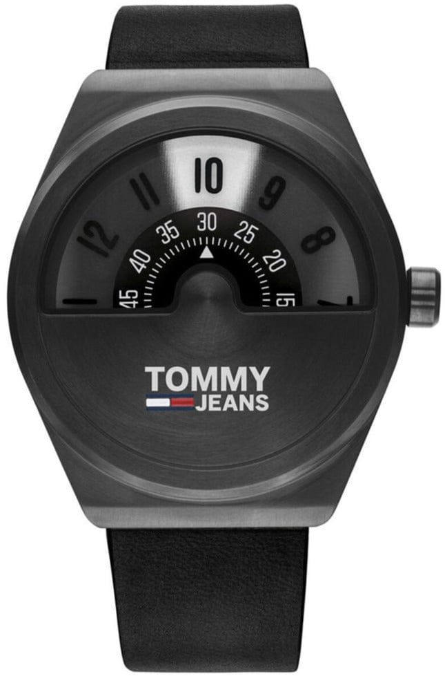 This Tommy Hilfiger Monogram Pop watch showcases a bold black dial, complemented by a sleek black leather strap. With precise quartz movement and elegant monogram detailing, this watch is perfect for the modern man seeking a stylish and reliable timepiece.