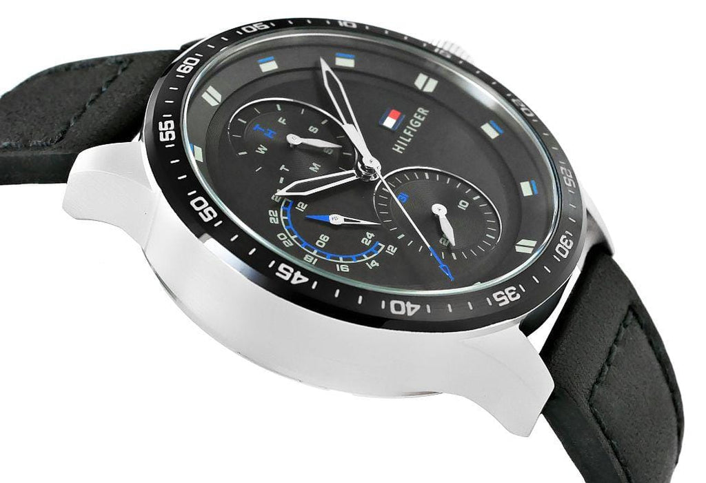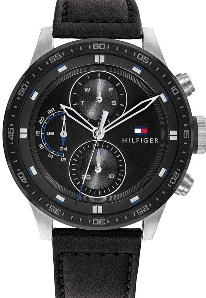 Tommy Hilfiger Trent Chronograph Quartz Black Dial Black Leather Strap Watch For Men - 1791810
