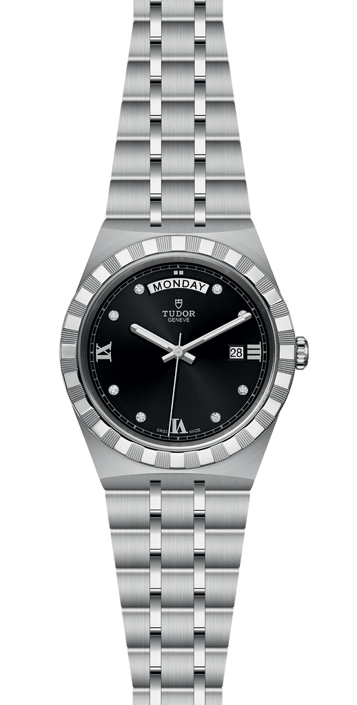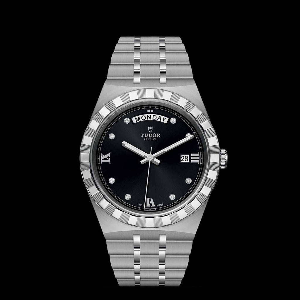 Tudor Royal Automatic Diamonds Black Dial Silver Steel Strap Watch for Men - M28600-0004