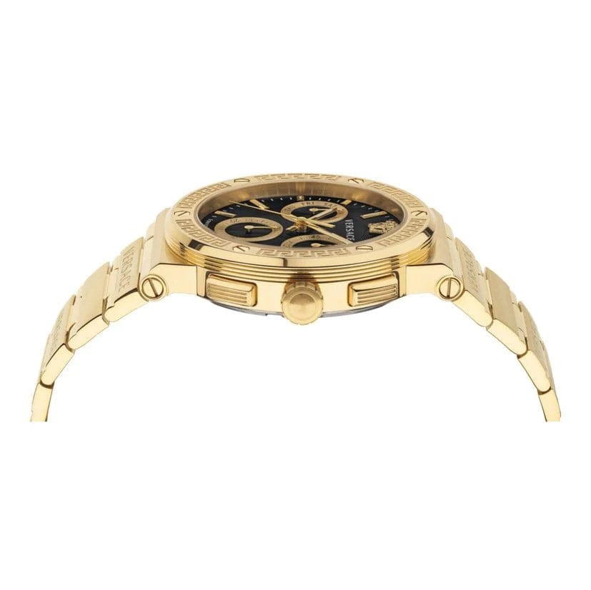 Versace Greca Chronograph Black Dial Gold Steel Strap Watch For Men - VEZ900421