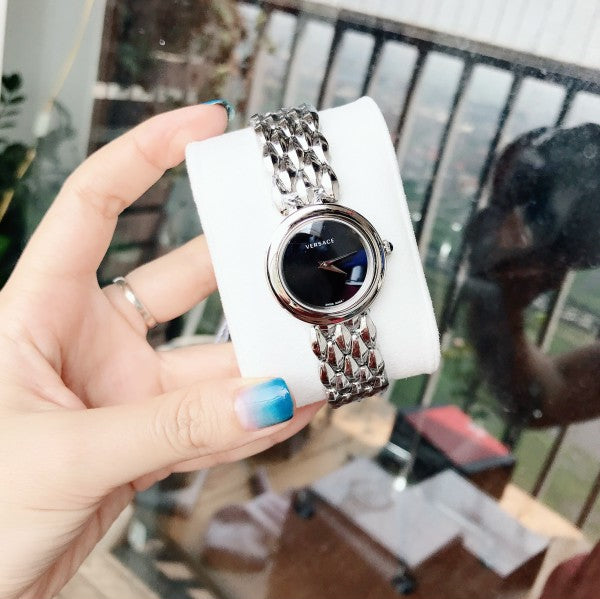 Versace V-Flare Quartz Black Dial Silver Steel Strap Watch for Women - VEBN00618