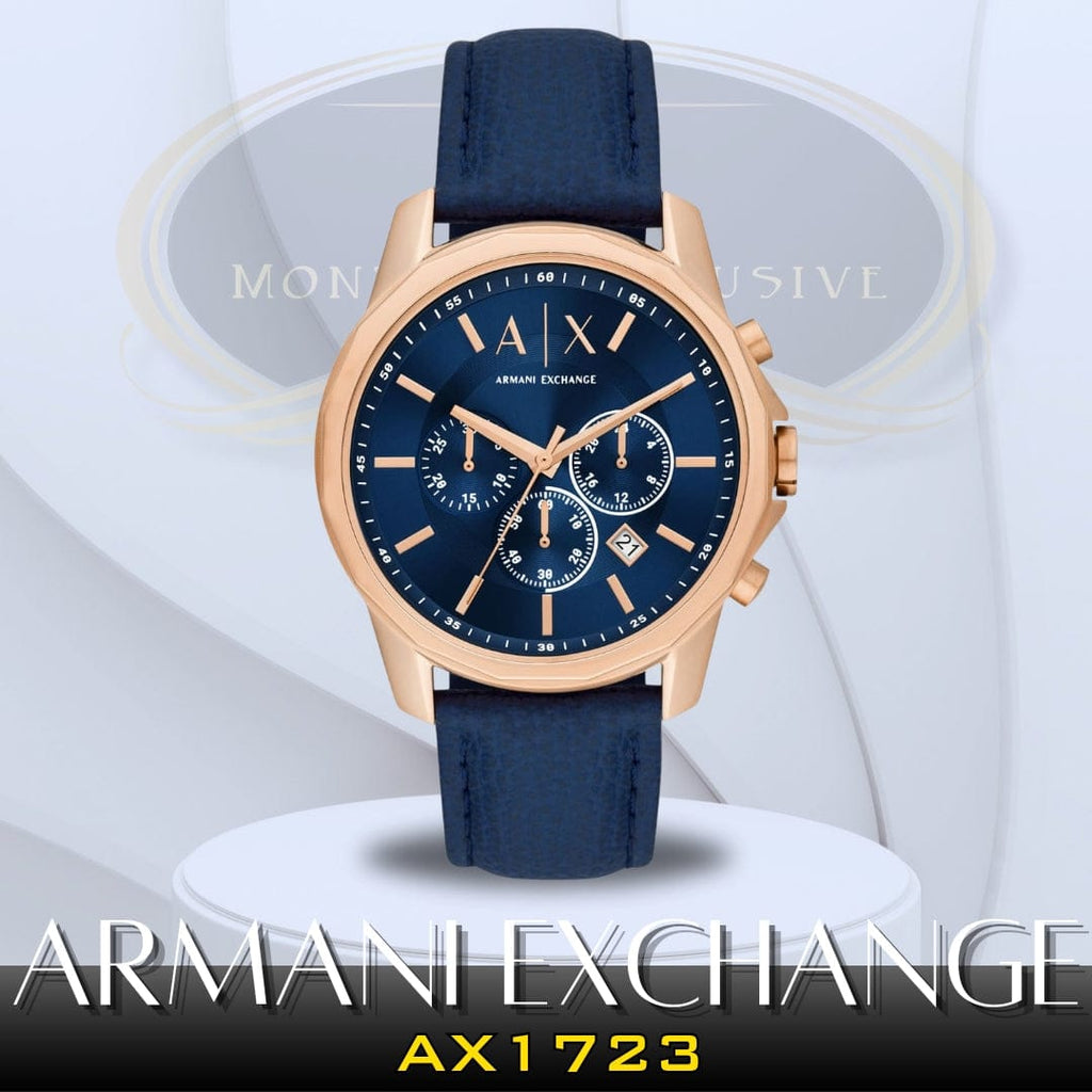 Elevate your style with the Armani Exchange Banks watch for men - AX1723. Featuring a sleek blue dial and a comfortable blue leather strap, this chronograph watch is the perfect accessory for any occasion. Stay on time and on trend with this must-have timepiece.