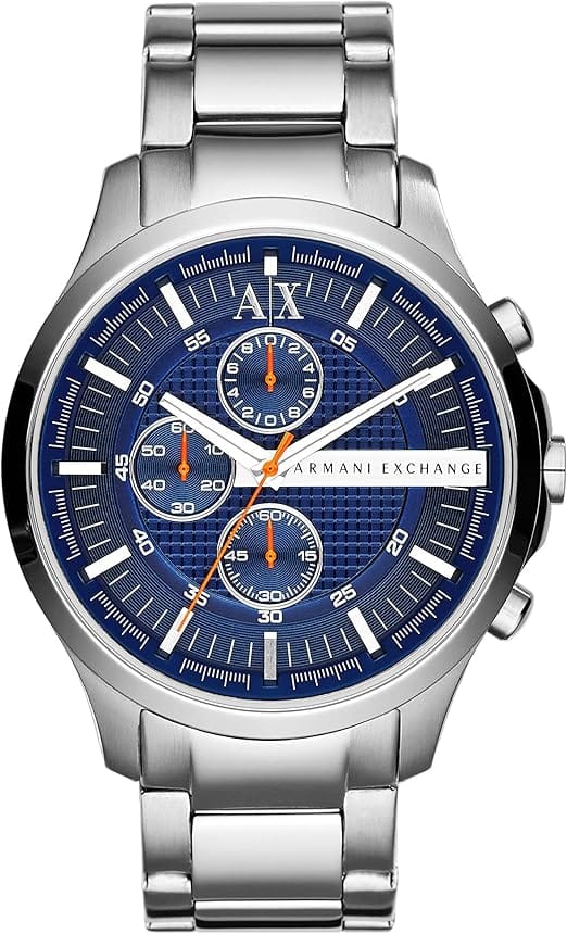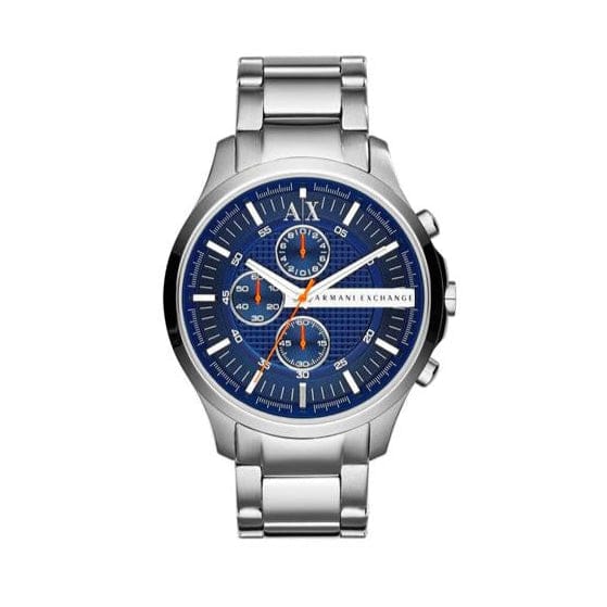 Discover the perfect blend of style and functionality with the Armani Exchange Hampton Chronograph watch. With its striking blue dial and durable silver steel strap, this watch not only looks great but also offers precise timekeeping through its chronograph feature. Elevate your accessory game with AX2155.