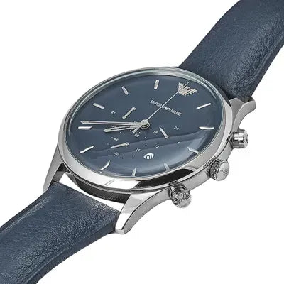 Emporio Armani Lambda Chronograph Blue Dial Blue Leather Strap Watch For Men - AR11018