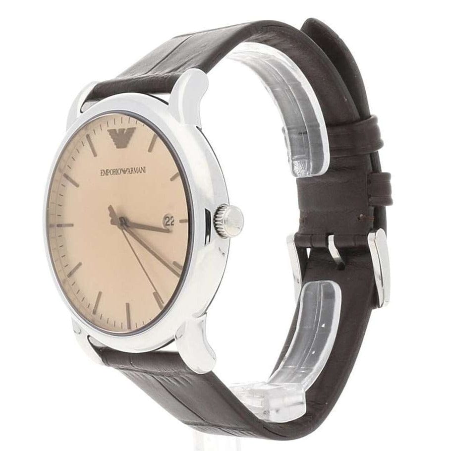 Mens Emporio Armani Luigi AR11096 brown leather strap watch. The perfect watch for an every day time piece and is easy wearing. This Luigi watch has a champagne dial and uses quartz movement.